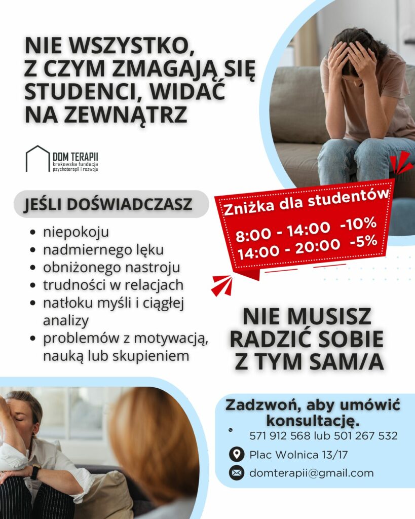 Oferta psychoterapii indywidualnej przygotowanej przez Dom Terapii – Krakowską Fundację Psychoterapii i Rozwoju. 13 marca 2026